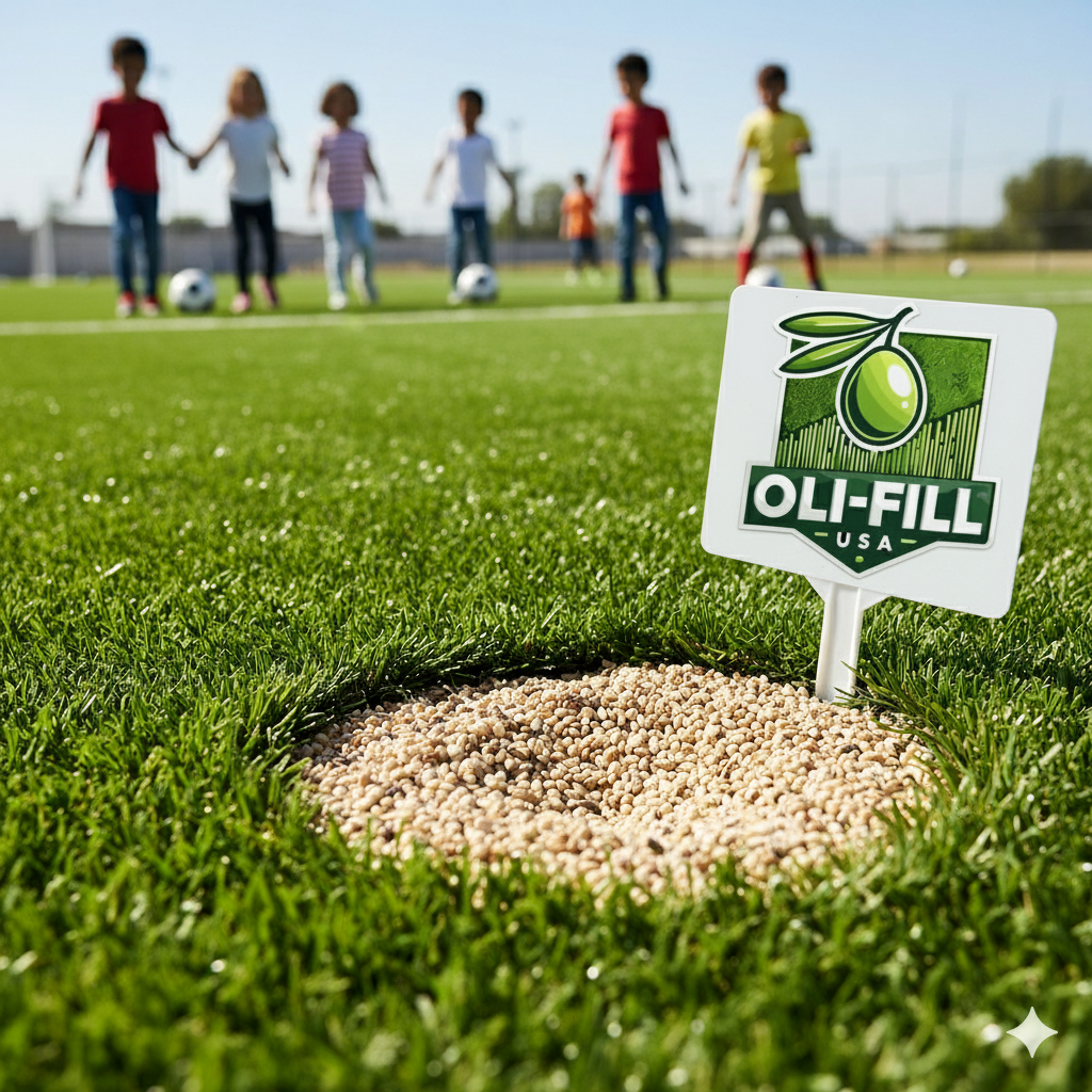Crafted from recycled olive pit granules, OLÍ-FILL USA is a leading sustainable infill for synthetic turf,
